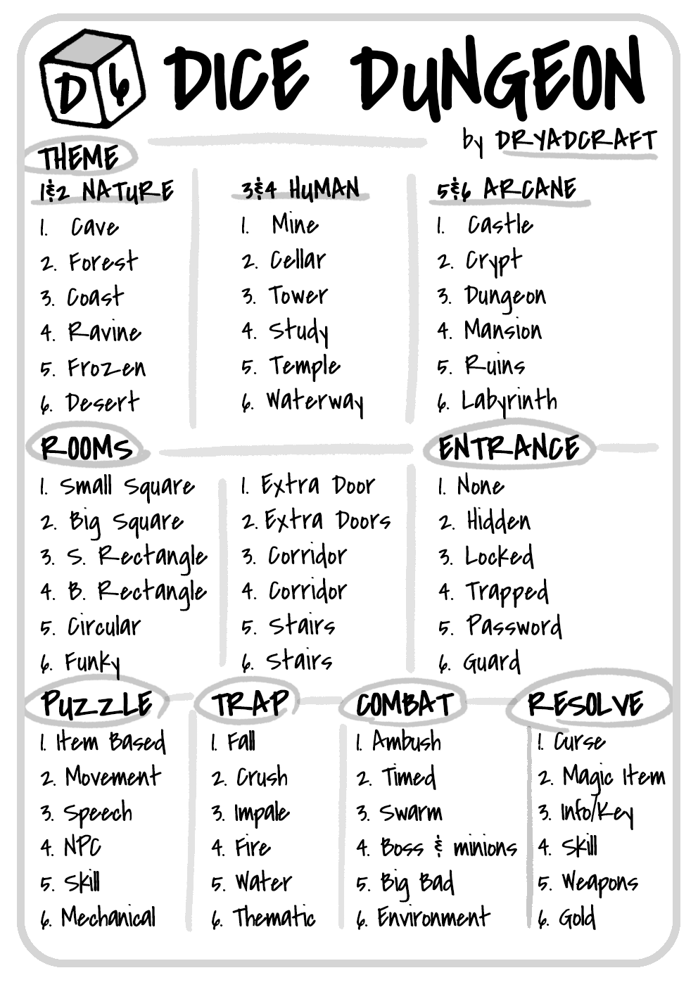 These are the various prompts I use to create a randomly generated 5 Room Dungeon.